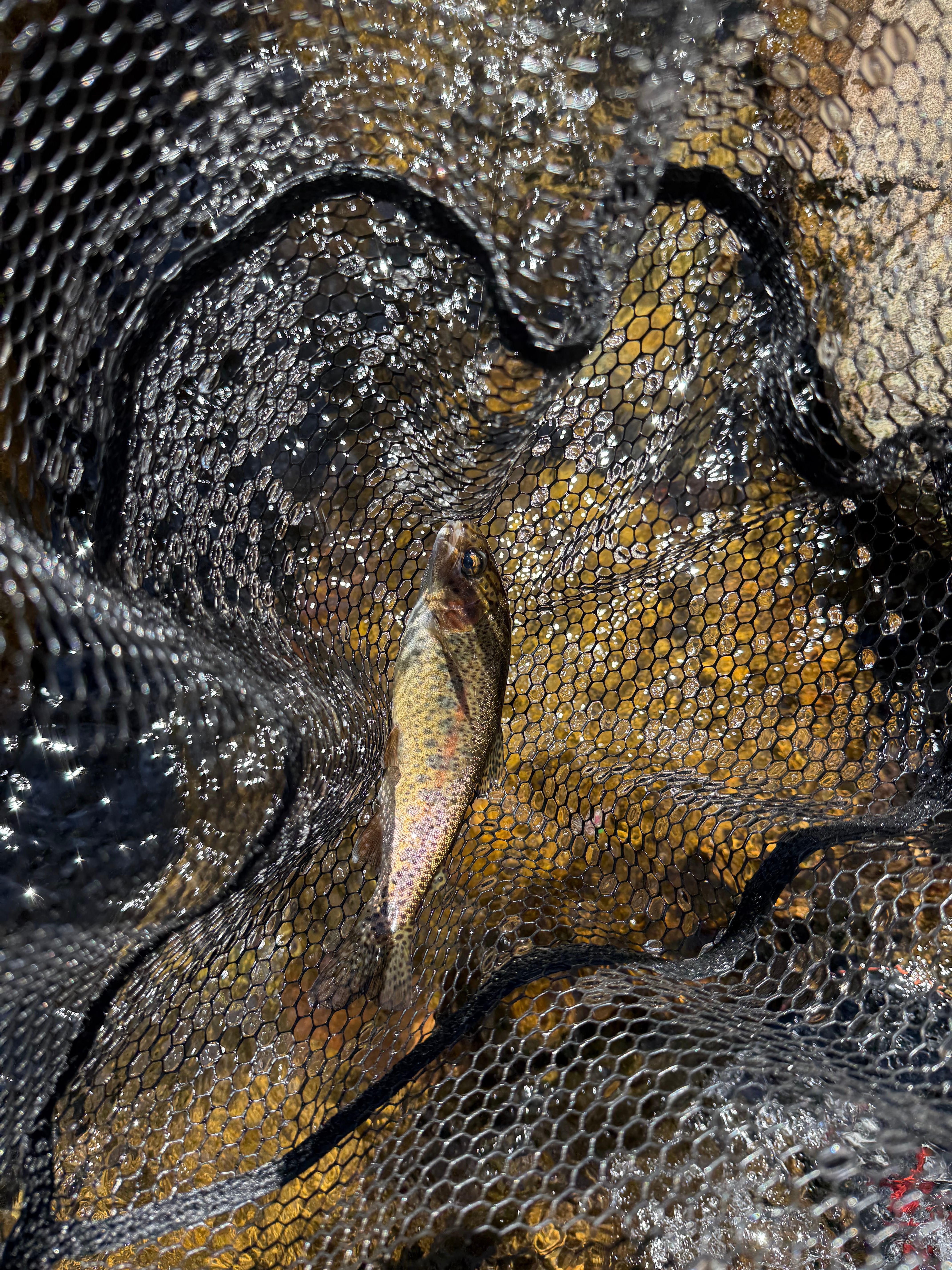 During the short session I had plenty of action with multiple decent size rainbows and one really nice brookie. Most of them were successful helping me with the release portion of catch and release negating the requirement to net them to pull the barbless hook.